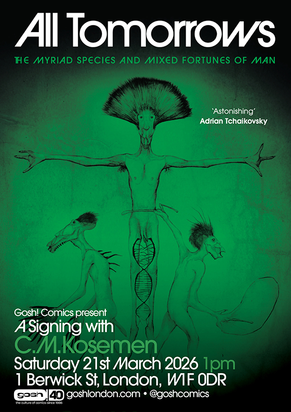 Here's another really exciting event for your calendars! We're thrilled to welcome C.M. Kosemen to the shop to celebrate the physical release of his incredibily popular speculative evolution book, All Tomorrows: The Myriad Species and Mixed Fortunes of Man. Kosemen will be signing here on Saturday 21st March 2026, from 1-2pm.