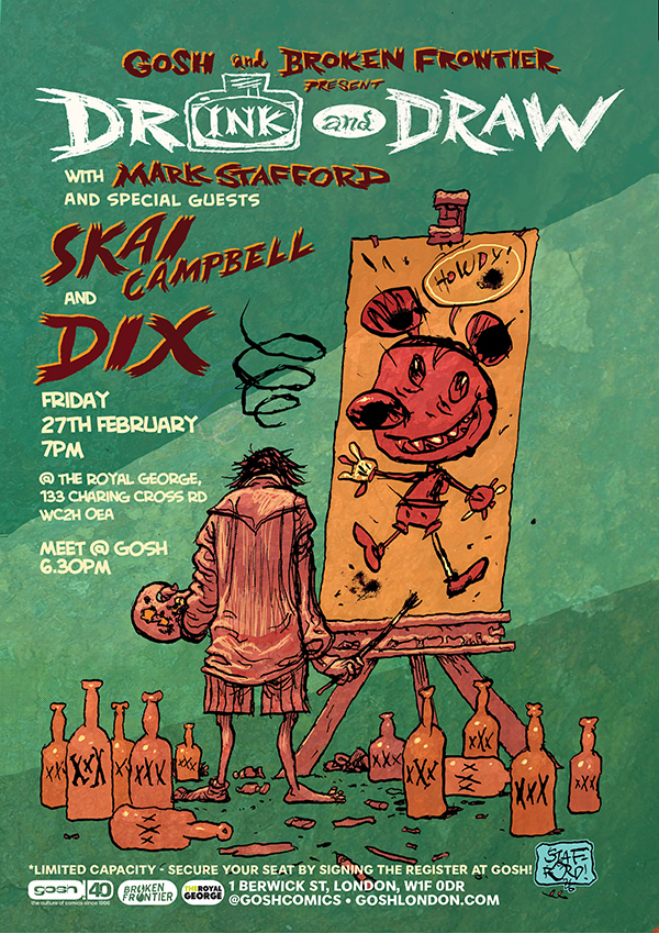 Broken Frontier and ourselves have been running the Drink & Draws since 2015 and we've been lucky enough to have had over 200 guest artists attend! It will be hosted by Broken Frontier's wonderful Andy Oliver and Gosh's Will Humberstone.