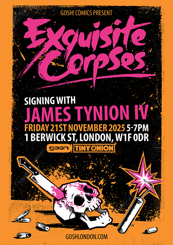 We can't wait to see James Tynion IV! Come along to meet him and get some Exquisite Corpses signed! You can pre-order a signed copy of the first volume by clicking the link here. Be sure to come along to the event to pick up some exclusive merch from Tiny Onion too!
