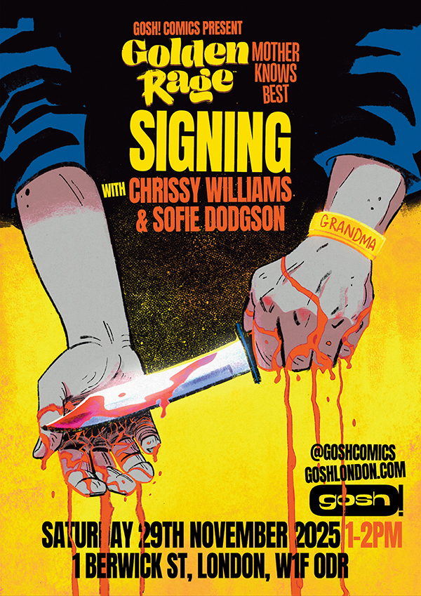 It's back! The incredible dystopian drama, Golden Rage, returns for another mini-series! We're thrilled to welcome the team back to the shop for a signing to celebrate the new collection, Mother Knows Best, on Saturday 29th November 2025, from 1-2pm. Joining us will be Chrissy Williams and Sofie Dodgson. Here's what publisher Image Comics say about it: