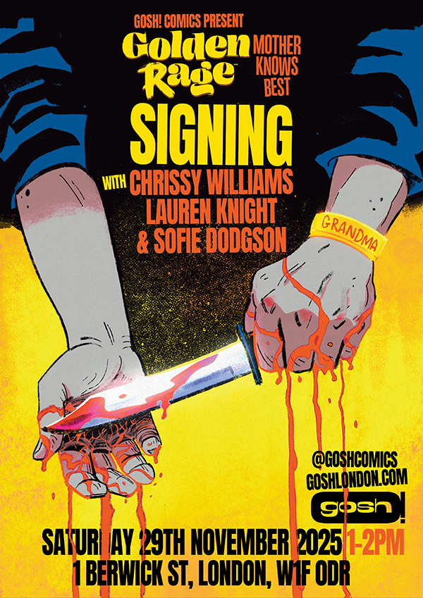 It's back! The incredible dystopian drama, Golden Rage, returns for another mini-series! We're thrilled to welcome the team back to the shop for a signing to celebrate the new collection, Mother Knows Best, on Saturday 29th November 2025, from 1-2pm. Joining us will be Chrissy Williams, Lauren Knight and Sofie Dodgson. Here's what publisher Image Comics say about it: