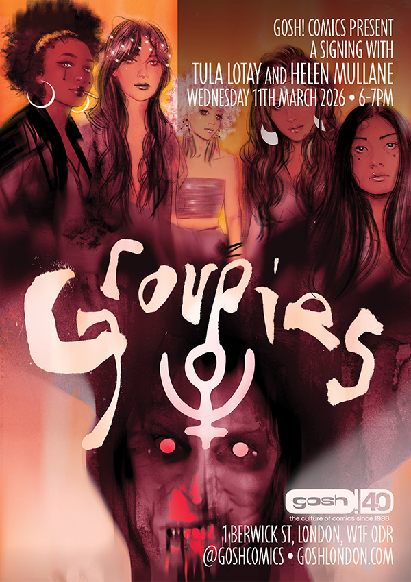 Absolutely delighted to welcome the magnificent Tula Lotay and Hellen Mullane for a signing to celebrate the release of their new comic, Groupies! The duo will be signing at the shop on Wednesday 11th March 2026, from 6-7pm.