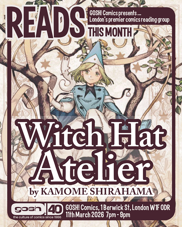 Reads, our very own monthly comics reading group, returns on Wendesday 11th March 2026 from 7-9pm. This March we'll be reading and discussing the popular manga series by Kamome Shirahama, Witch Hat Atelier!
