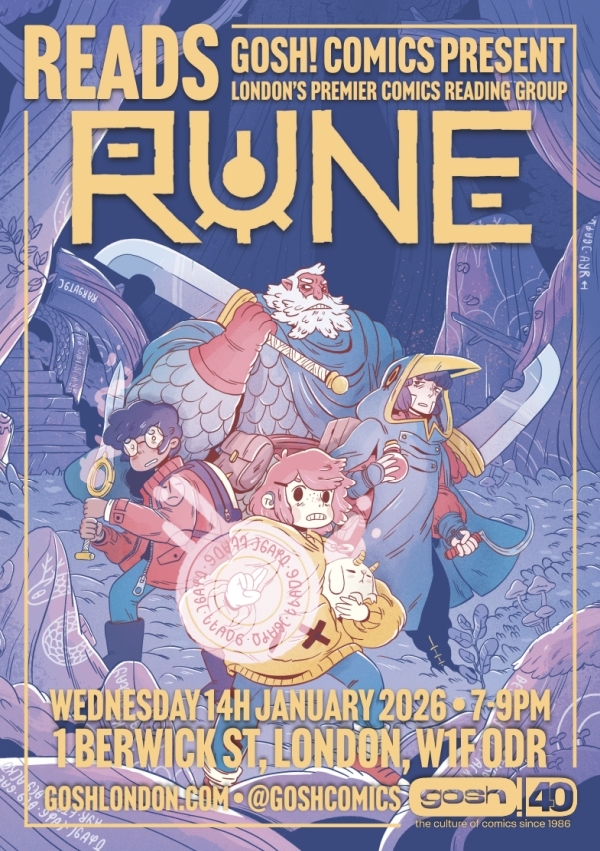 It's Reads week! This month, London's premier graphic novel reading group takes a look at Rune: The Tale of a Thousand Faces, the first volume in Carlos Sánchez's fantasy series. All are welcome, so pop along this Wednesday, 7-9pm, to have a chat!
