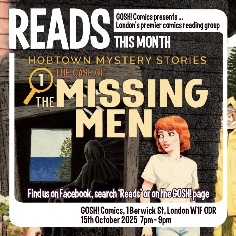 First up, Wednesday brings us the October edition of Reads, and it's a corker this month: The Hobtown Mystery Stories Vol 01 Case of the Missing Men. One of our favourites from last year, so we're looking forward to hearing what people have to say about it! All are welcome, 7-9pm on Wednesday evening, right here at the store!